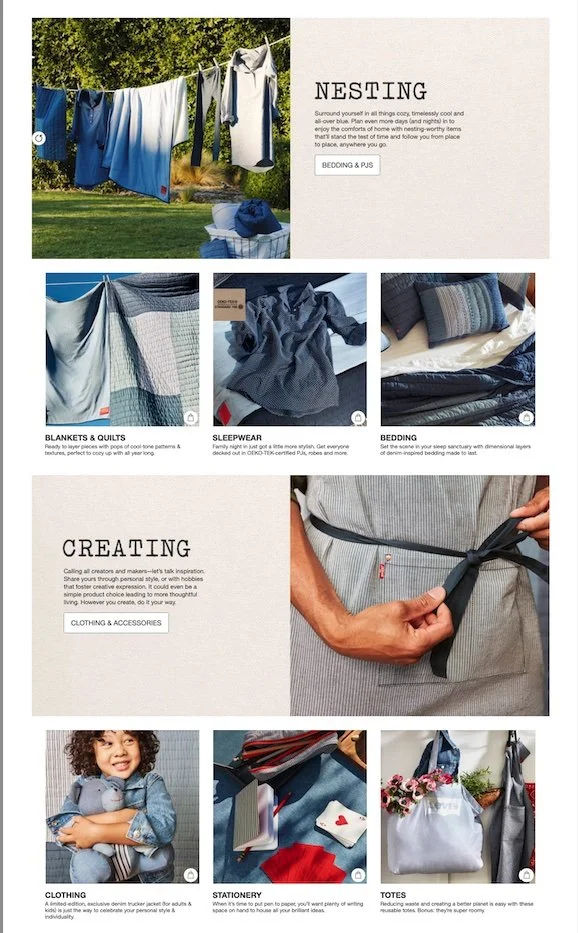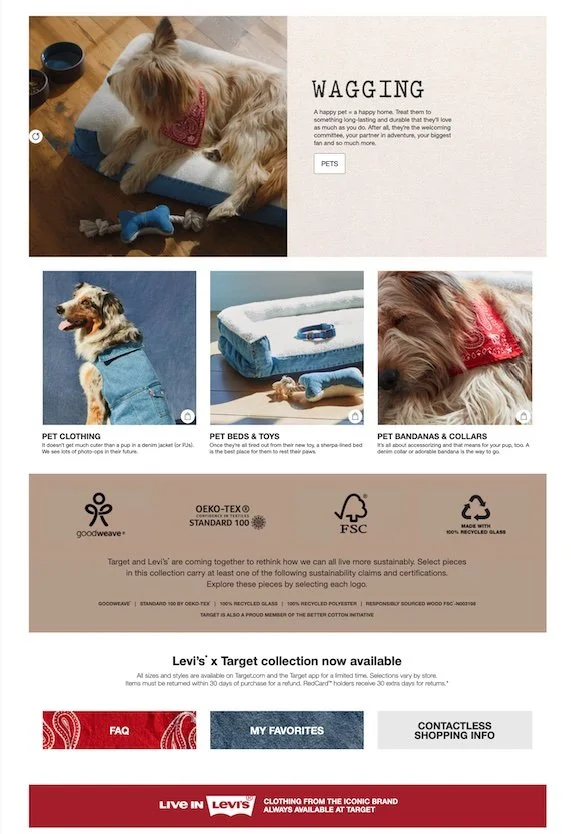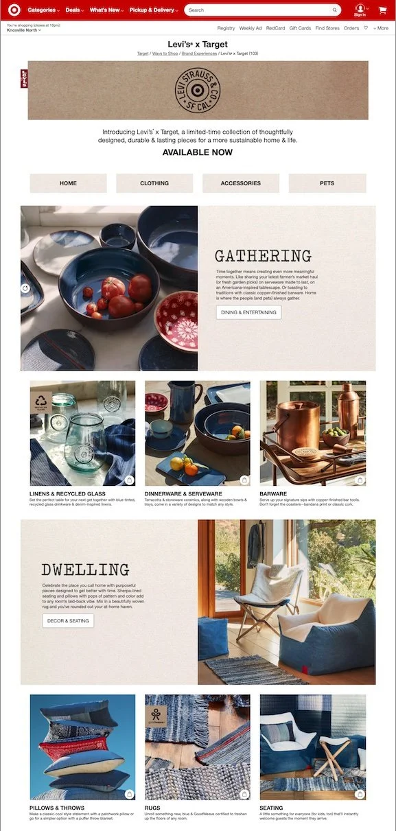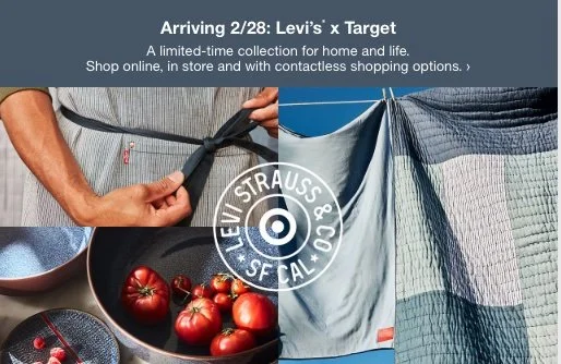 Target’s exclusive, limited-time partnership with Levi’s. Focused on sustainability, design & home entertaining/decor.